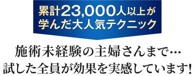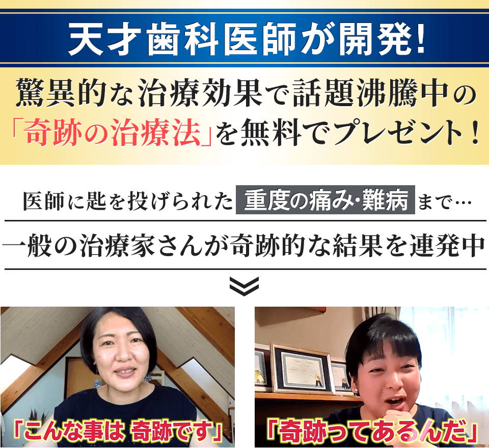 ことから「奇跡の治療法」と呼ばれ、これまで累計23,000人以上が学んだ方法の2021年最新テクニックです!